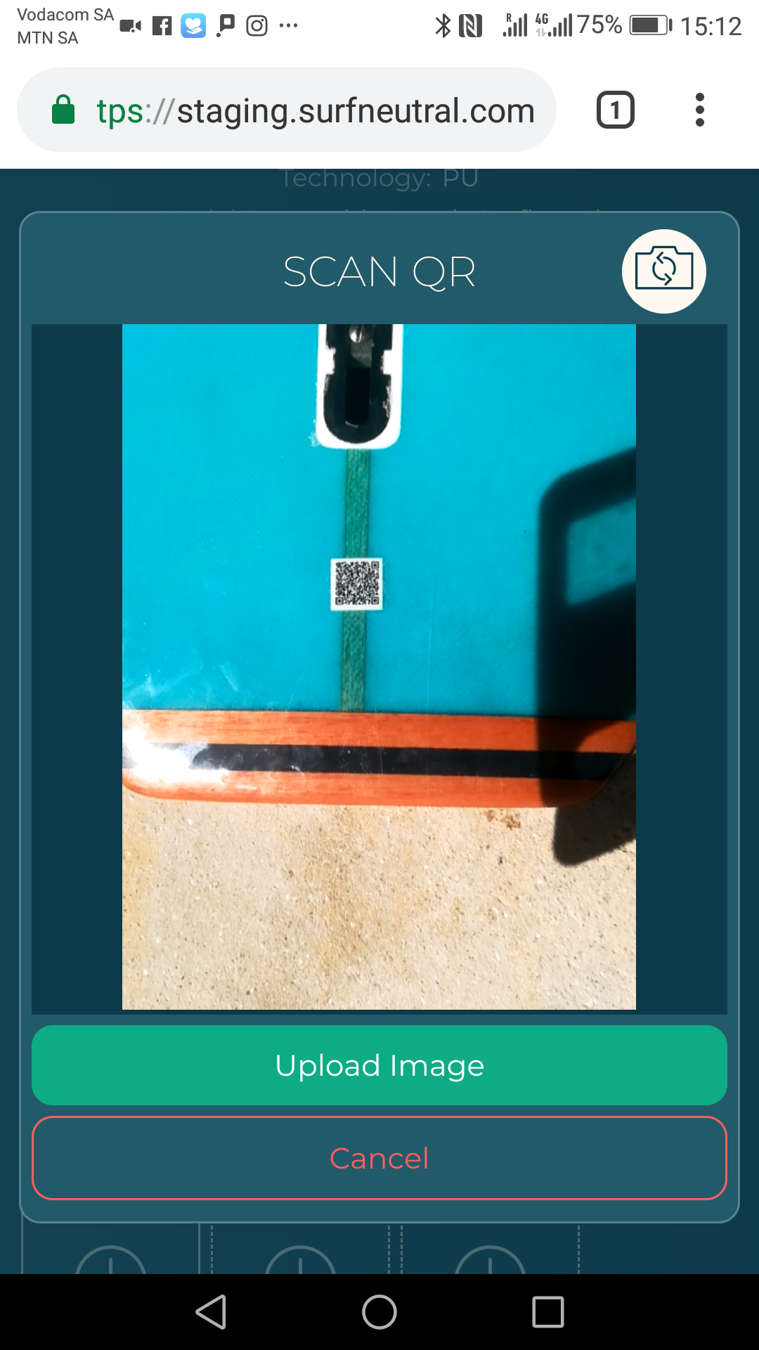 If the code could not be scanned we do have a fall back function where a clear image of the code can be uploaded. Surf Neutral will analyse the image and close the window when done.