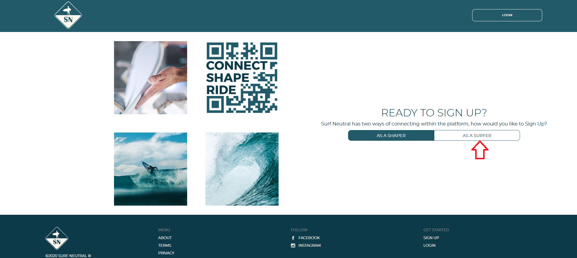 Below tutorial is to sign up as a shaper, surfers only need to press the surfer instead of the shaper button.
